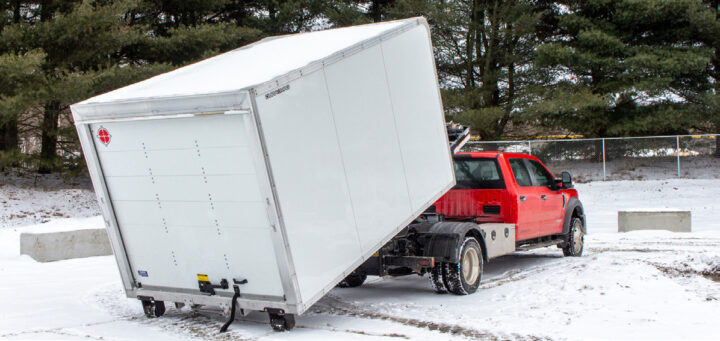 The Switch-N-Go® Van Body is a fully enclosed, lightweight unit that allows for cargo protection during transport and storage. The smooth sides provide ample advertising space and features a single rear roll-up door and bolt-on pullout ladder that allows for simple and safe operation on and off the ground.